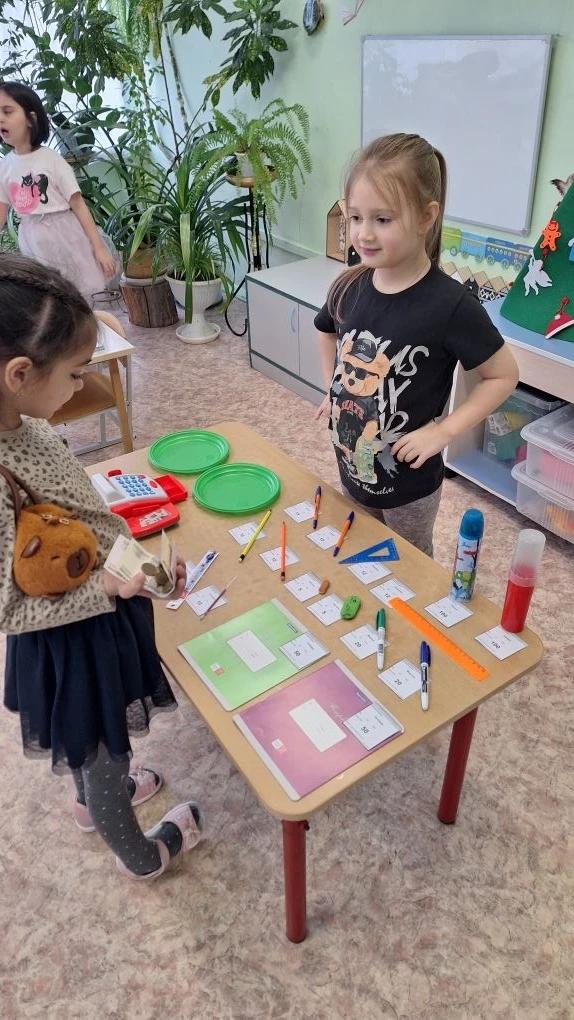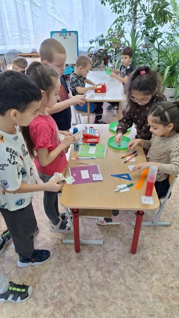 Познавательное мероприятие в подготовительной к школе группе. Цель: развивать умение считать, сравнивать числа, подвести к осознанию зависимости достоинства монеты от ее покупательной способности, к пониманию функции денег как меры стоимости. Развивать речевую активность детей, побуждать вступать в диалог. Воспитывать положительную мотивацию к обучению в школе, бережное отношение к вещам. Материалы: товары разной стоимости, монеты разного достоинства, ценники.